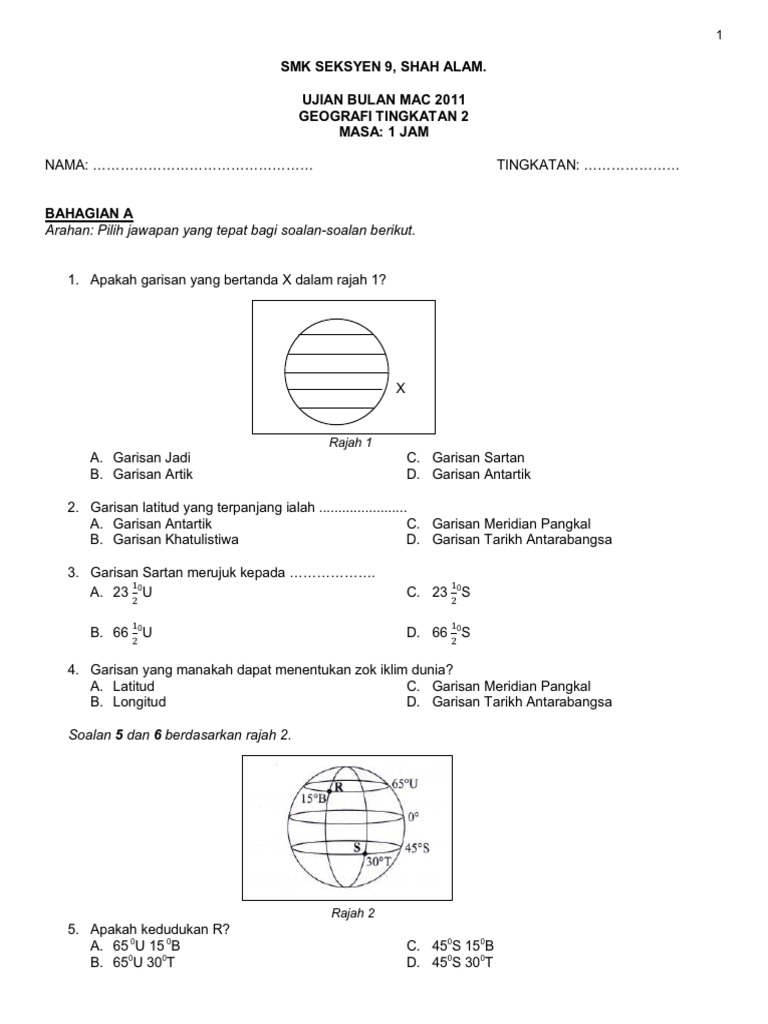 Soalan Peperiksaan Pertengahan Tahun Geografi Tingkatan 2